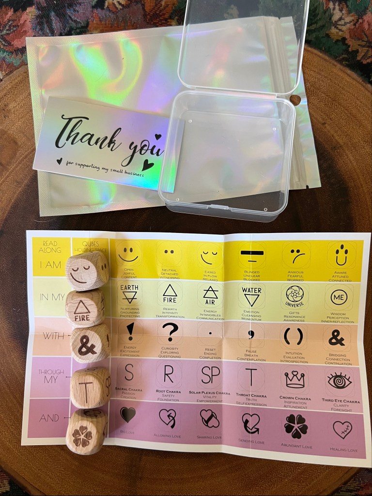 QUBES Pocket Insight Includes one set of QUBES pocket insight; 5 custom made wooden cubes in a pocket sized case with an intuitive guide. Includes standard shipping. Please Allow 3-5 days to process order before mailing. Please inquire for questions or special orders. All Sales Final.